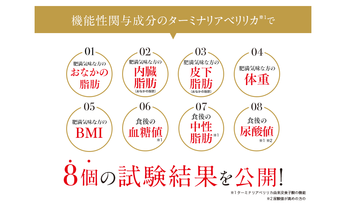 | 機能性表示食品 | ターミナリアベリリカ由来没食子酸 | 約122円※2 |